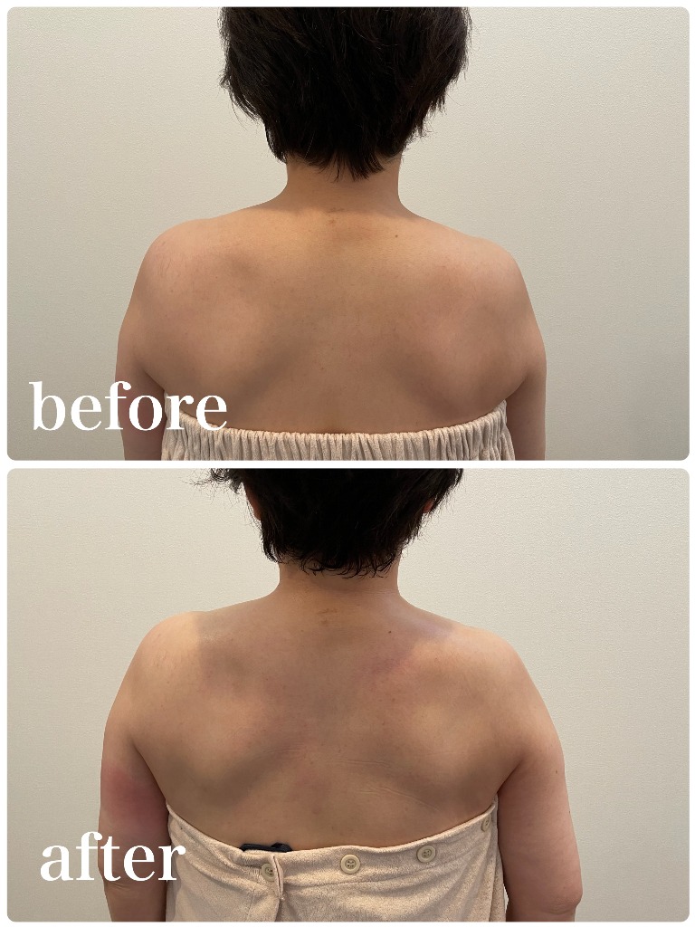 写真のお客様も、初回で巻き肩が改善され、肩のラインがキレイになりました♪